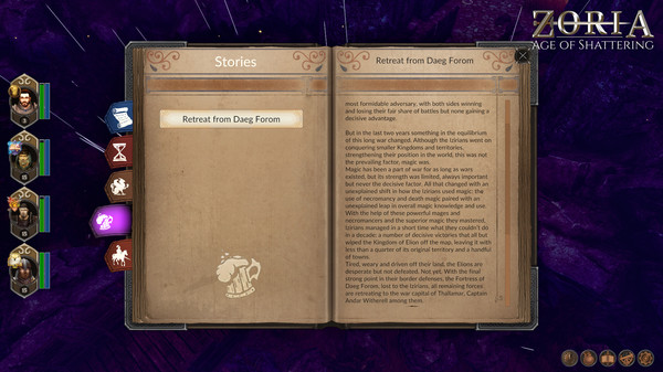 A story-driven, party-based RPG with strong tactical elements, base and follower management that takes place in the expansive Fantasy world of Zoria, a world filled with magic, ancient history, tumultuous politics, and countless mysteries.