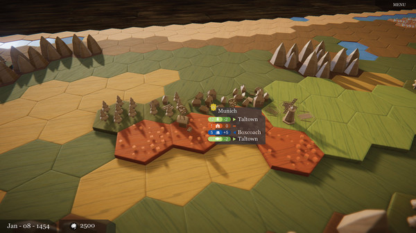 You, the king, need to construct flourishing towns and ensure steady supply and demand of their goods! By doing that, you attract cunning tradesmen to trade between your settlements and - in turn - pay a decent amount of customs to you! Just make sure that none of your citizens starve to death.
