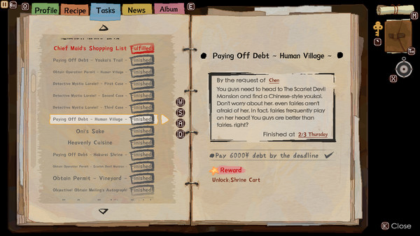 A brand new pixel art restaurant simulator based on the Touhou Project! Play as Mystia, the owner of a small izakaya. Collect ingredients by day, cater to the customers by night, learn recipes from familiar characters, and become the best izakaya owner in all of Gensokyo!