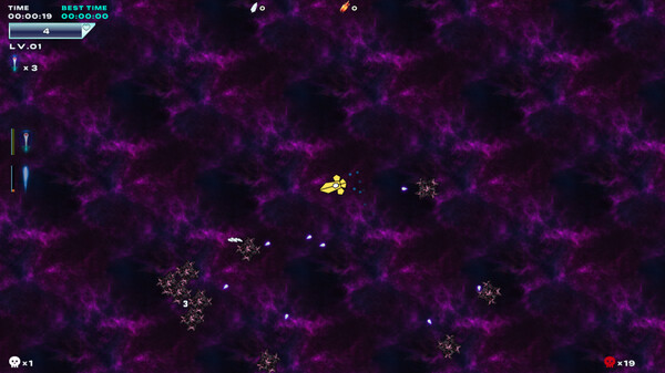 Shin Galaxy - Engage is an action game with RPG elements in a top-down perspective, where you control spaceships and tries to survive as much as possible in the stages. Improve performance, change appearance and unlock new ships to get as far as you can.