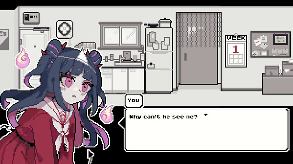 This is a point-and-click, command-selection style adventure game where the protagonist is a girl who has become a ghost. The objective is to fulfill her desires by speaking to her beloved "him" causing poltergeists, visiting in dreams, or even cursing.