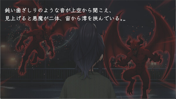 選択は、刻一刻と変化する。 妹の命、悪魔との契約、裏切りと信頼――川崎の夜を舞台に繰り広げられる現代退魔ビジュアルノベル。リアルタイムで変化する選択肢、沈黙すら意味を持つ選択システム。悪魔と紡ぐマルチエンディング。あなたは、何を犠牲にして、何を守るのか。