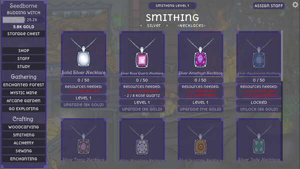 Charmcraft Idle is a cozy, witchy idle shop simulator where you gather magical resources, craft enchanted goods, and slowly automate every part of your spellbound business. Click, craft, study, and hire staff as your humble witch shop grows into a magical enterprise.