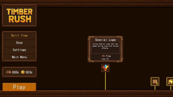 Timber Rush — это динамичный инкрементальный roguelite, где каждый удар превращается в апгрейды, хаос и огромные числа.