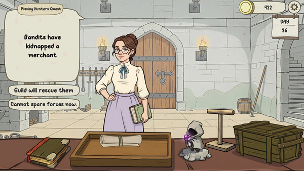 In a single-player management and simulation game set in a fantasy isekai world, manage resources, develop adventurers, and build your guild to the top from the perspective of a guild employee.